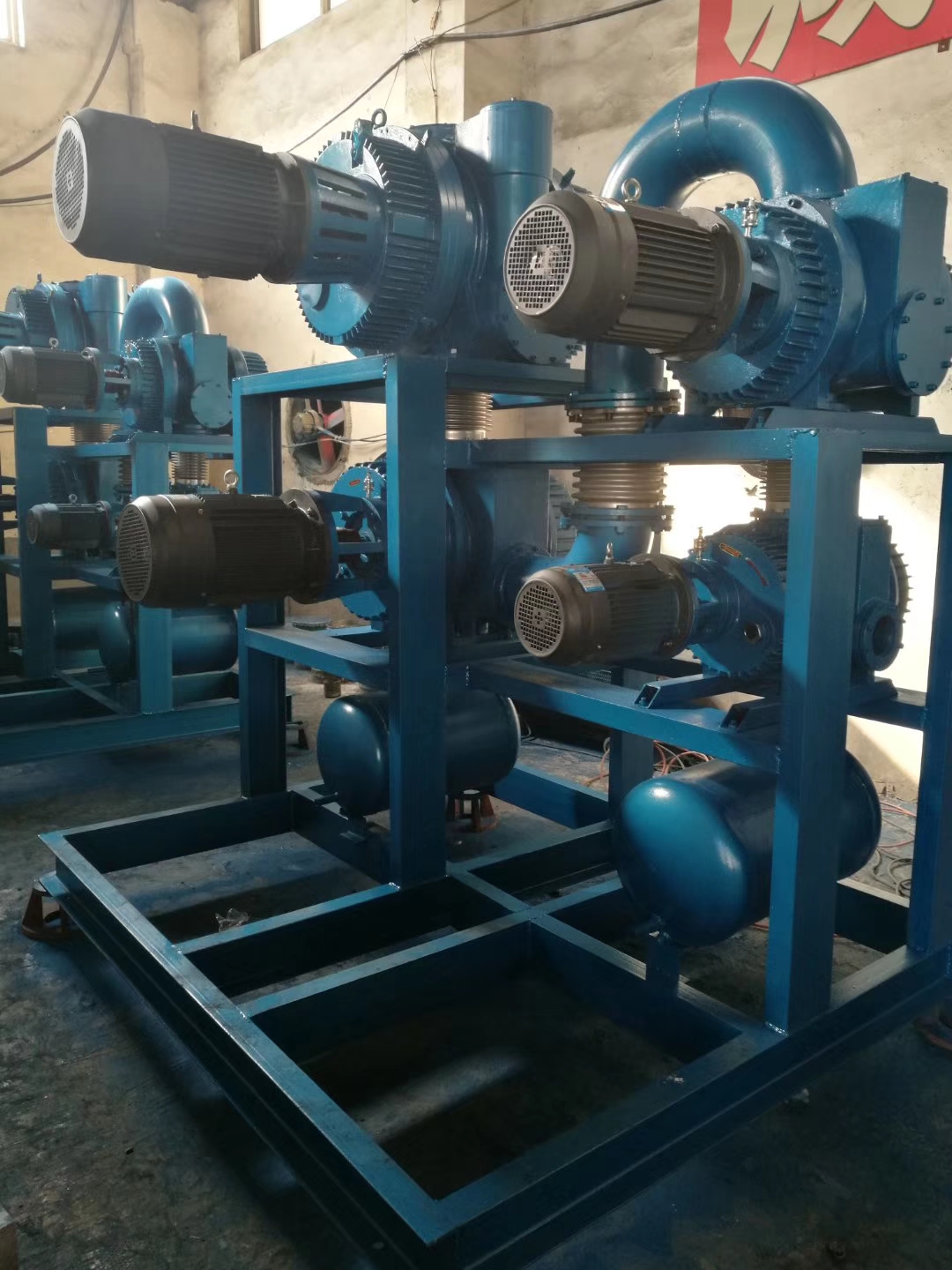 羅茨真空機組由于采用了節(jié)能的2BV系列水環(huán)泵作為前級泵,所以比JZJ2S系列具有效率高、結構緊湊、維修方便、無泄漏(2BV泵為機械密封設計,不同于2SK系列的盤根密封)、耐腐蝕(2BV采用不銹鋼葉輪)、防護等級高等優(yōu)點。羅茨真空泵采用了本公司自行研發(fā)的ZJ系列羅茨真空泵,我公司對羅茨真空泵泵腔與軸承腔的密封進行改進后的ZJ系列羅茨真空泵在抽出大量水蒸汽及各類溶劑的工藝中泵油不易乳化。羅茨水環(huán)真空機組的前級泵的工作液多采用水,也可采用有機溶劑(可用甲醇、乙醇、二甲苯、丙酮等有機溶劑)或其它液體,將前級泵作為閉路循環(huán)系統(tǒng)使用,大大減小了對環(huán)境的污染,同時大大提高了對有機溶劑的回收,其極限真空度由工作液的飽和蒸汽壓決定。